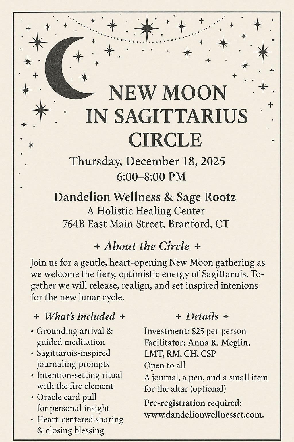 Come connect, create, and align with the magic of the moon as we open space for new beginnings and inspired visions.