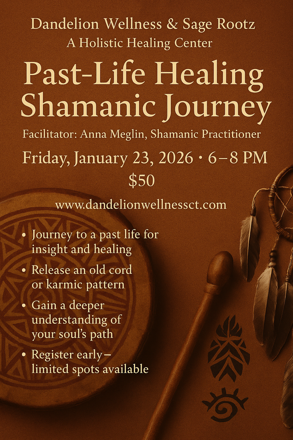 Join Anna Meglin, Shamanic Practitioner, Reiki Master and Spiritual Life Coach for a powerful evening of healing, reflection, and spiritual growth.