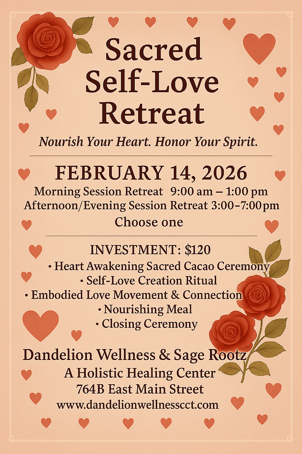 Join us on February 14, 2026 for a heart-centered Valentine’s Day journey of self-love, embodiment, and spiritual nourishment.